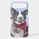 Protégez votre appareil avec ce coque avec une photo de gros plan d'une secourt de mélange Collie Heeler en noir et blanc bordé d'une écharpe rouge colorée transformée en crayon coloré gravé. Cliquez sur personnaliser pour ajouter du texte comme un nom ou une initiale.
