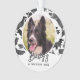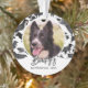 Bordure Collie Nom du Motif Photo 1st Christmas Ornament. L'arrière - plan est un motif avec des collies frontalières. Personnalisez l'ornement avec la photo, le nom et l'année de naissance de votre chien. Un joli gardien de vacances pour un collier frontalier propriétaire.