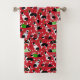 Chiens de Collie à la frontière mignonne dans des tenues de vacances festives portant chapeaux de Père Noël, bois, cordes de lumières et pois de polka et chandails de Jacquard sur un arrière - plan rouge avec des ornements épars.