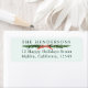 Cette étiquette d'adresse de retour comporte une bordure de pin vert avec un ruban rouge.