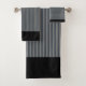 Des rayures grises élégantes apportent du cachet aux serviettes de bain. Style : Ensemble de serviettes Transformez votre salle de bain en oasis personnelle avec une serviette personnalisée parfaite pour vous sécher dans le style. Dimensions : comprend une serviette de bain de 30 po x 60 po, une serviette à main de 16 po x 28 po et un linge de 13 po x 13 po Matière : devant est un mélange de polyester, dos est 100 % coton L'impression par sublimation permet une impression vibrante conçue pour dernière machine lavable, sèche-linge à faible