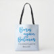 Born Again Believer. For I am not ashamed of the gospel of Christ. Romans 1:16 KJV. Script lettering in blue and bordered in Navy Blue and covered in light blue.