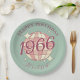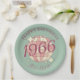 Add a touch of retro flair to your born in 1966 60th birthday party with party table decorations featuring paper plates adorned with a disco ball in pink shades against a teal blue background!
