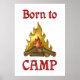 A camper will enjoy this fun design with a shiny campfire and the words - Born to Camp. Makes a great gift for a camping lover.