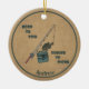 What guy wouldn't love this ornament made especially for him? It says Born to Fish, Forced to Work. It has a linen look background, a fishing pole with a fish he caught and a tackle box on it. It says Born to Fish, Forced to Work and you personalize it with his name. The reverse side is the same design, but says the year rather than his name. The text is in a dark blue green font and there is a ring around the edge made in the same color to finish it off nicely. Definitely a great gift for Dad, Grandpa, Uncle or Friend!