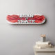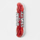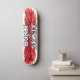 Cool skateboard featuring the wording "Born to skate" in a white modern graffiti font on a red feather background.
