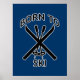 A pair of crisscrossed skis with ski poles in the middle and the phrase "Born to Ski"