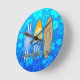 Retro Born To Surf. 3 vintage style surfboards with the message Born To Surf. Ocean blue background with Hawaiian Honu Sea Turtles and blue hibiscus flowers.
