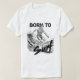 Born To Surf : A dynamic black-and-white illustration of a smiling surfer riding a wave. Rendered in a vintage woodcut or linocut style, the design utilizes intricate cross-hatching to create texture and motion, capturing the raw energy of the ocean and the joy of the ride.