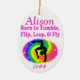 This fantastic Gymnast will do back flips for this pretty pink personalized and dated Born to Tumble, Flip, Leap and Fly Gymnastics ornament from www.zazzle.com/mysportstar. This Gymnast believes in the Power of her Gymnastics Dreams and is going for gold. This fantastic customized Gymnastics ornament makes a treasured gift for Birthdays, Holidays, or any occasion, not just for Christmas. Your special Gymnast will love hanging this Gymnastics ornament on her tree year after year. It's a Gymnastics Christmas celebration!