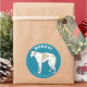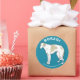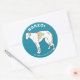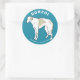 Sticker with an illustration of a Borzoi standing upon a blue background.