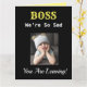 Wish your BOSS a happy retirement with this cute and funny card. A grumpy girl photograph is matched with a “So sad!” endearing verse. The bold black and yellow design in a big card sends a great message from a group of coworkers.