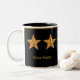 A graphic image of five gold stars with the text 5 Star Boss by artist/designer Charmaine Paulson on a mug. The mug has the text “World's Greatest Boss" and a template for your name.