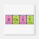 Bossy spelled out as B Os S Y (Boron Osmium Sulfur Yttrium) on a magnet for the scientist in you.
