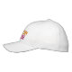 Fits well due to elastic edging, not adjustable. Good qualty material. Good quality embroidering. Subtle lettering (white on beige) just as my wife likes.