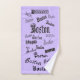 Pretty lavender bath towel set with different Boston typography decorating it.