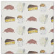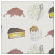 Fabric design features an original marker illustration of a row of classic Boston, Massachusetts foods: baked beans, clam chowder, Boston cream pie, and beer. Great for your favourite Bostonian foodie!