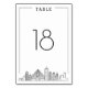 Une carte de numéro de table de mariage élégante mais minimale pour un mariage qui se déroule dans la merveilleuse ville de Boston, Massachusetts. Il dispose d'un numéro de table simplifié reposant au-dessus d'une version stylisée de l'horizon unique de la ville populaire.