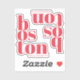 Show your love for Boston, Massachusetts with this eye-catching modern typographic sticker. The design features the word "Boston" split across three lines in bold, decorative lowercase letters, highlighted in vibrant red. Customizable text options in a sleek, thin sans serif font add a subtle, contemporary touch, making it perfect for personalization. Ideal as a vacation keepsake, laptop decal, decorative accent, or a stylish branding piece for a Boston-based business or event.