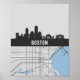 Boston Massachusetts City Skyline With Map Poster