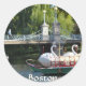 Swan Boats by the bridge in the Boston Public Garden, Boston, Massachusetts.