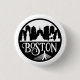 This fresh black-and-white illustration of the Boston skyline features many familiar landmarks, including the capitol building, the custom house tower, the Hancock, Old Hancock, and Prudential buildings, as well as the Zakim bridge and financial district.