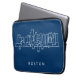 This design features a hand drawn sketch of the Boston skyline on a brown background.