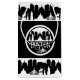 This fresh black-and-white illustration of the Boston skyline features many familiar landmarks, including the capitol building, the custom house tower, the Hancock, Old Hancock, and Prudential buildings, as well as the Zakim bridge and financial district.