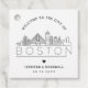 Enhance your wedding welcome packages or event party favours with a custom set of welcome gift favour tags! These elegant yet minimal-style favour tags are tailored for a wedding taking place in the beautiful and historic city of Boston, Massachusetts. They feature a modern deco skyline with the city's name integrated underneath. All elements of the design including the text elements are unlocked and customizable by using the edit function.