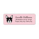 Cute return address labels featuring an illustration of a little Boston terrier on a custom colour background. The colour of the background and the font can be changed with Zazzle's customization tool. Default background colour: pink. Ideal for Boston terrier lovers and owners.
