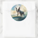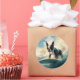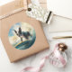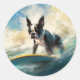 Boston Terrier Beach Surfing Painting Classic Round Sticker