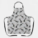 Cute Boston Terrier dogs with black and white coats sit and stand scattered dog bones and paw prints pattern.