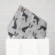 Cute Boston Terrier dogs with black and white coats sit and stand scattered dog bones and paw prints pattern.