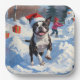 Boston Terrier Christmas Festive Snow Scene Paper Plate