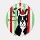 Funny looking Boston Terrier Ornament for Boston Terrier Fans! Christmas Stripes pattern. You can customize text!