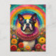 An adorable Boston Terrier in a field of wildflowers with a circus clown collar AI generated art