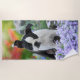 A young cute Boston Terrier female puppy, black with white markings, in a flowery garden. Boston Terriers, also called Boston Bulls or "American Gentlemen", are a gentle, friendly and intelligent dog breed for companionship. A puppy-eyed doggy photo taken by Katho Menden, this beach towel is an enchanting gift idea for dog lovers. http://www.zazzle.com/kathom_photo You can add your own text by pressing the customize it button.