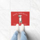 Adorable Christmas doormat featuring a Bernese Boston Terrier wearing a santa hat on a festive red background.