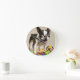 Boston Terrier Dog Playing with Toys Round Clock