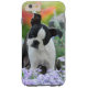 A young cute Boston Terrier female puppy, black with white markings, in a flowery garden. Boston Terriers, also called Boston Bulls or "American Gentlemen", are a gentle, friendly and intelligent dog breed for companionship. The puppy-eyed doggy was photographed by Katho Menden, this iPhone 6 plus case is an enchanting gift idea for doglovers. http://www.zazzle.com/kathom_photo