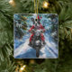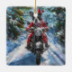 Boston Terrier Dog Riding Motorcycle Christmas Ceramic Ornament