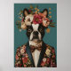 Boston Terrier In Suit Poster, Boston Terrier Portrait, Boston Terrier Oil Painting, Animal Head Human Body Poster, Funny Dog Poster, Pet