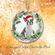 Boston Terrier Puppy Holly Wreath Christmas Ceramic Ornament