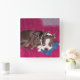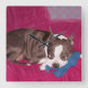 Boston Terrier Resting on Red Couch -Digital Paint Square Wall Clock