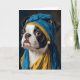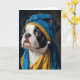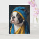 A Boston Terrier with a pearl earring fine art spoof parody blank inside all occasions greeting card