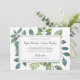 Vintage botanical wedding invitation displays your wedding details in inky off-black block and calligraphy lettering, on a background of painted green watercolor leaves, branches and ferns. Alternate layouts available in our Botanica collection.