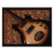 a bass guitar with a floral backdrop.