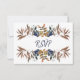 Beautiful script and serif fonts work together to create a soft formal design for an elegant Bohemian themed wedding event. Easily edit the template to your required RSVP date. Elegant watercolor foliage in trendy Bohemian colours. Shades of beige, brown blue and rust botanicals that match our Boho Beige Blush Blue Watercolor Floral Wedding collection. See our collections for more Boho wedding designs. Botanical Beige Navy Blue Wedding RSVP Card.