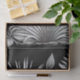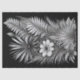 An intricate and detailed illustration of tropical flowers and reeds arranged in a beautiful composition. The black and white colour scheme adds a sense of elegance to the illustration. This illustration is designed with a black background to allow the flowers and reeds to stand out.