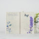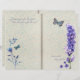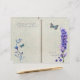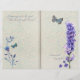 A lavender themed, double page style journal paper, with faint blue floral pattern, blue flowers, butterflies and lavender text. The back of the paper has a matching faint blue flower pattern. Simply fold to create two ready made pages.